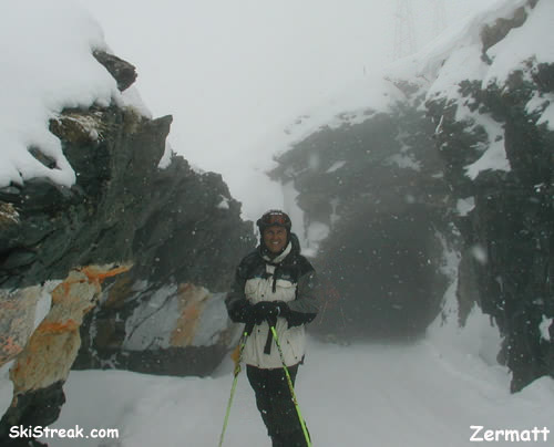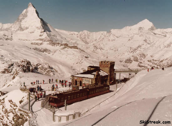Scott in front of one of the many Zermatt trams (Check out Mark in the window)